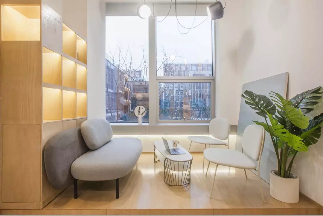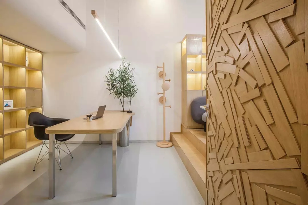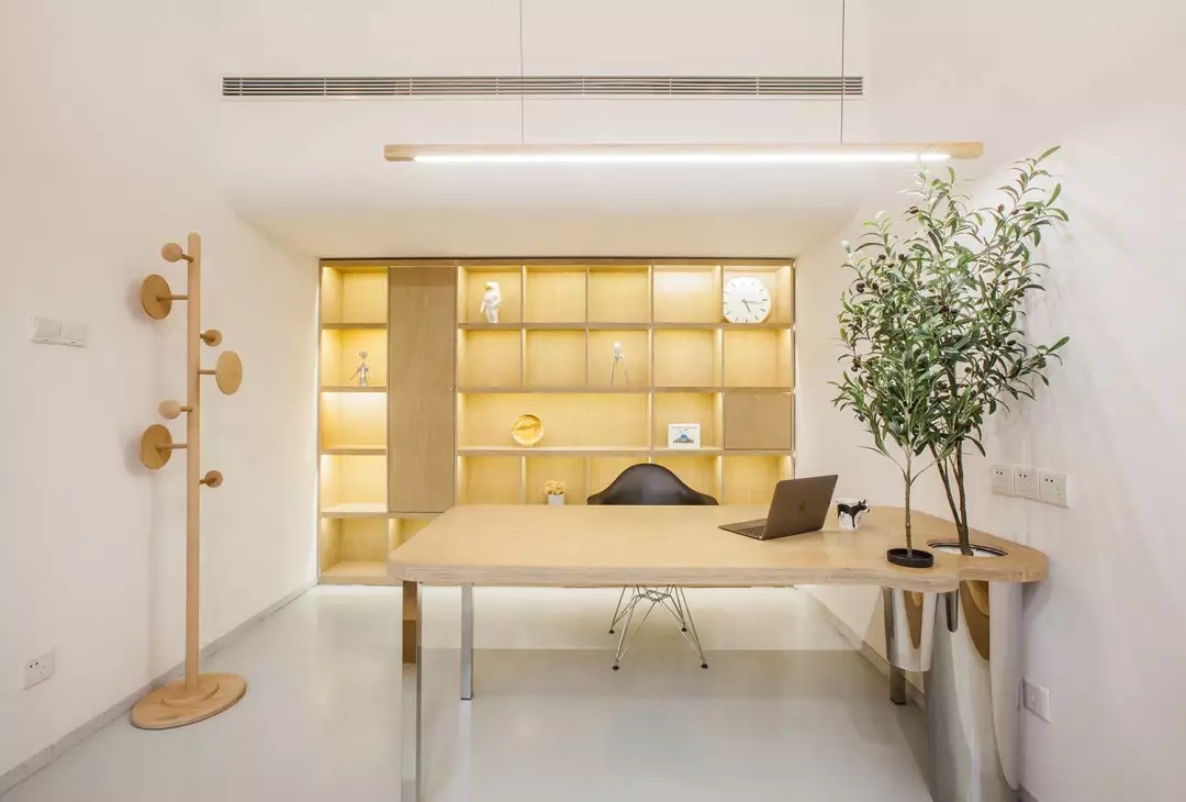 該項(xiàng)目位于上海市閔行區(qū)七寶萬科國際;我們希望工作室足夠的輕松、溫性、創(chuàng)意,于是通過顯性與隱性的符號對我們的目標(biāo)進(jìn)行構(gòu)建;空間用了大量溫暖的木色,并組成木質(zhì)的空間體塊,這些體塊以整個白色空間為背景,進(jìn)行功能與空間節(jié)奏上的構(gòu)筑: