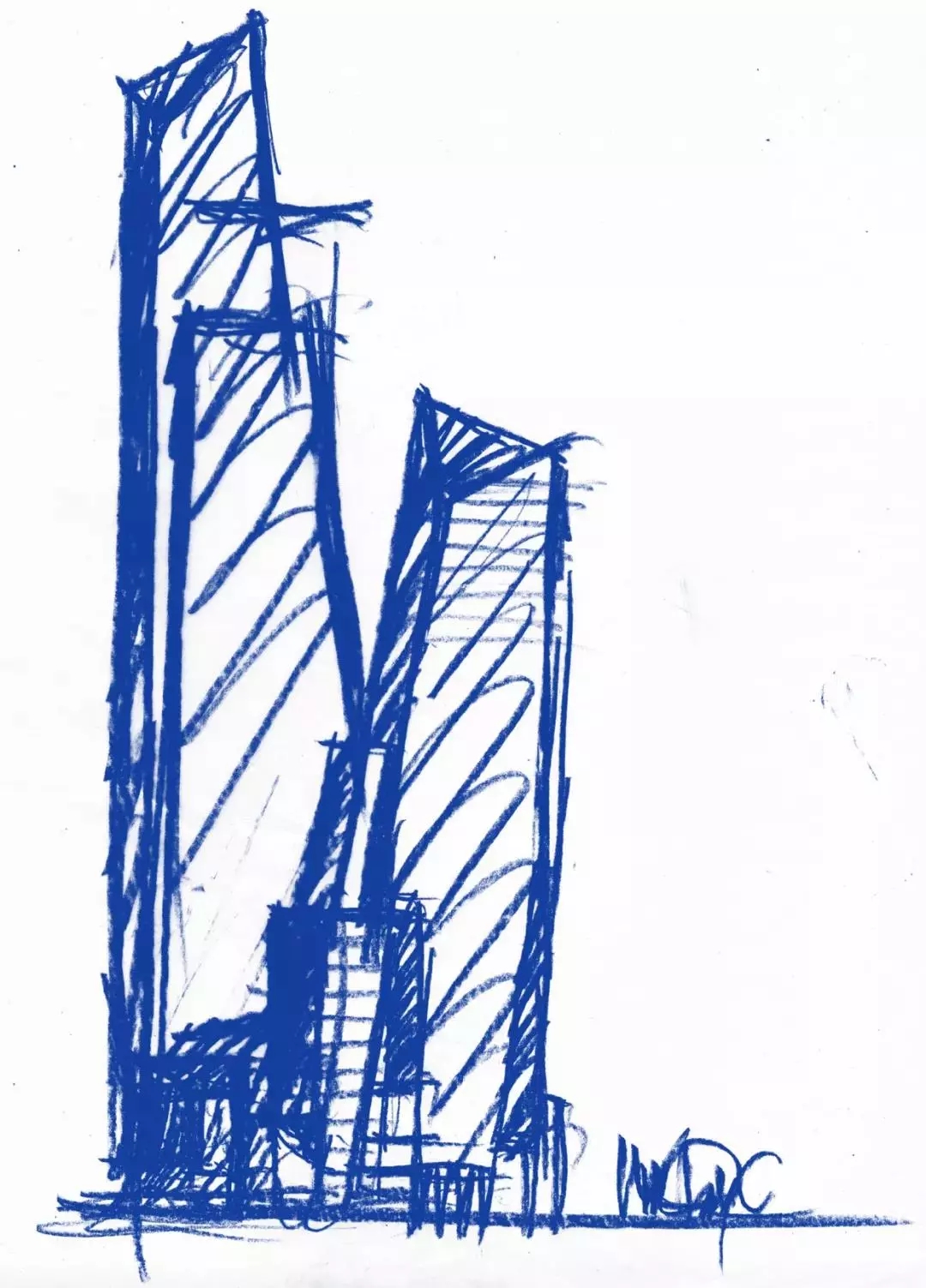KPF創(chuàng)始人及設(shè)計(jì)執(zhí)行總監(jiān)William Pedersen表示,“我們力圖通過10和30號(hào)樓的形態(tài)去表達(dá)一種自然的力量。兩棟塔樓向上升騰形成類似于地質(zhì)形態(tài)水晶石一般的外形,相互致敬,構(gòu)成一種有如都市舞蹈般的生動(dòng)的城市空間關(guān)系”。