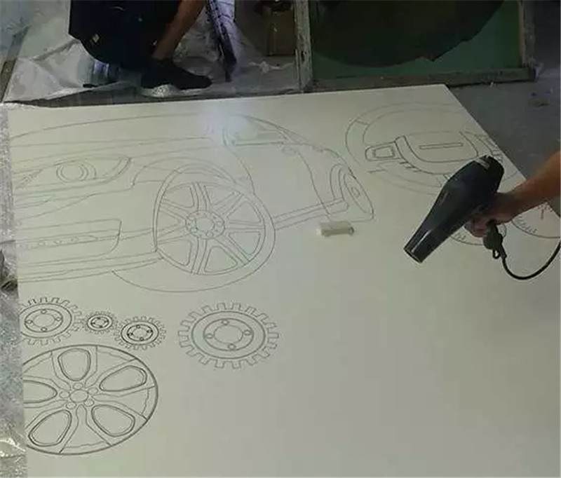 這幅畫是最初設(shè)計(jì)的圖案,圖形繪制的大粉筆畫,它的好處是可以定期的更換,就像黑板報(bào)一樣來(lái)制定不同的主題,就員工的活動(dòng),員工的留言簽字都可以在這體現(xiàn),如同活的展示墻。