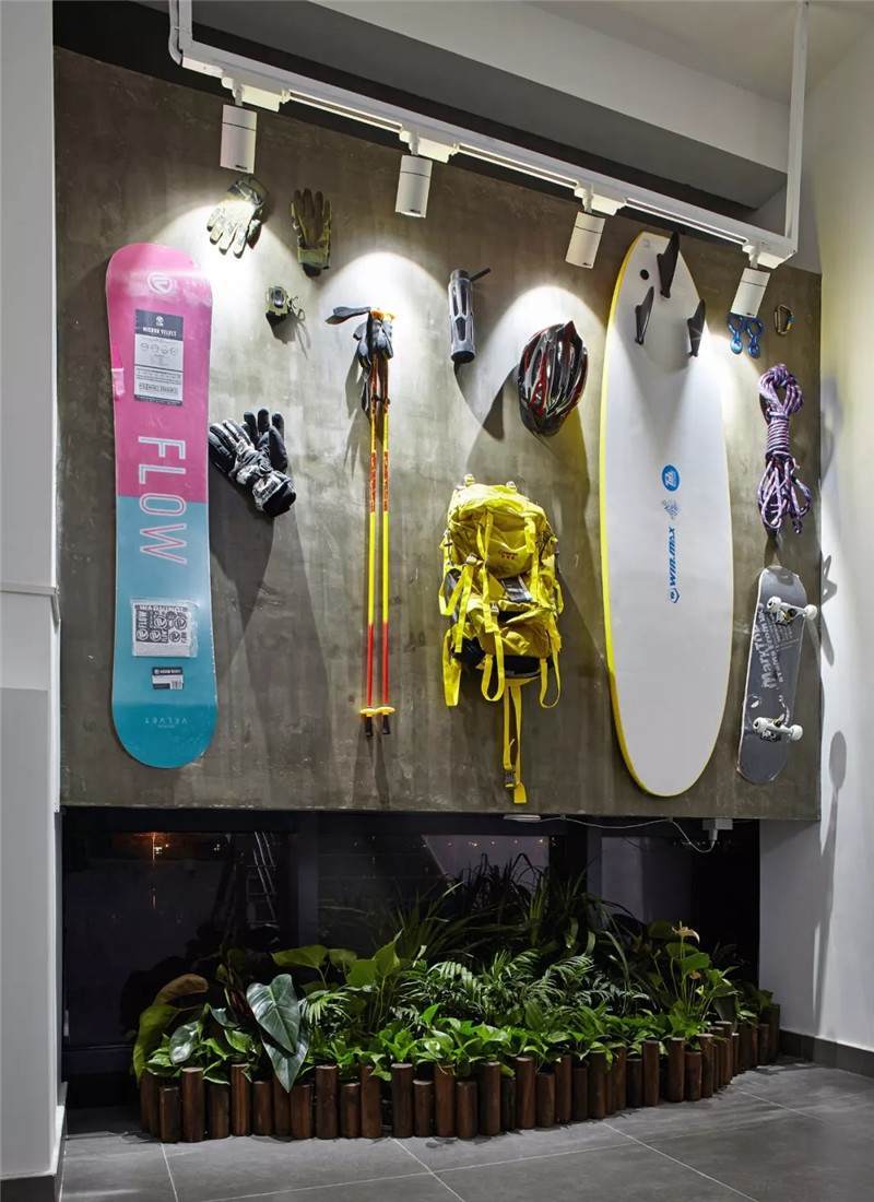 后期我們選用了一些戶外探險(xiǎn)的運(yùn)動(dòng)裝備,包括有一些極限大賽的LOGO,作為裝飾裝在了墻上,能很好地凸顯科技運(yùn)動(dòng)公司的主題,視覺(jué)效果也非常好。以上是兩個(gè)相對(duì)完整的案例,接下來(lái)還有一部分比較分散的項(xiàng)目有可能沒(méi)有形成系列,但是也都有不同的特點(diǎn)。