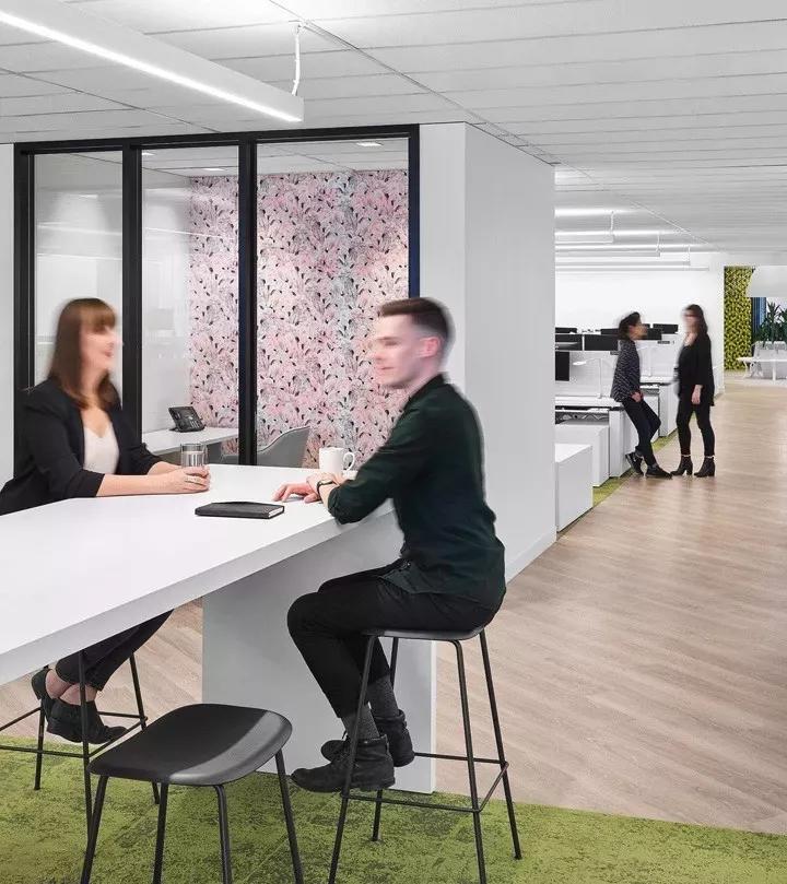 考慮到客戶以協(xié)作為基礎(chǔ)的工作屬性,設(shè)計團隊規(guī)劃了一系列正式和非正式的會議空間,為各種工作行為提供了靈活便利性。