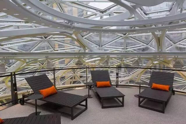 不同類型的開放區(qū)域 亞馬遜全球不動產及設施副總裁約翰·斯科特勒(John Schoettler)表示, 整座建筑可以同時容納800人。它除了是一個類似公園的空間外,員工們也可以在里面上網充電。