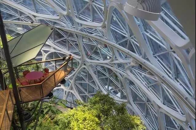 讓他們可以在溪邊的石子小徑上放空自我,在來自南美的大樹下閉目休憩。當然以高標準的企業(yè)文化著稱的亞馬遜,也希望 The Spheres 如此優(yōu)美舒適的生態(tài)環(huán)境能夠讓員工更好地沉思和迸發(fā)出靈感的火花。