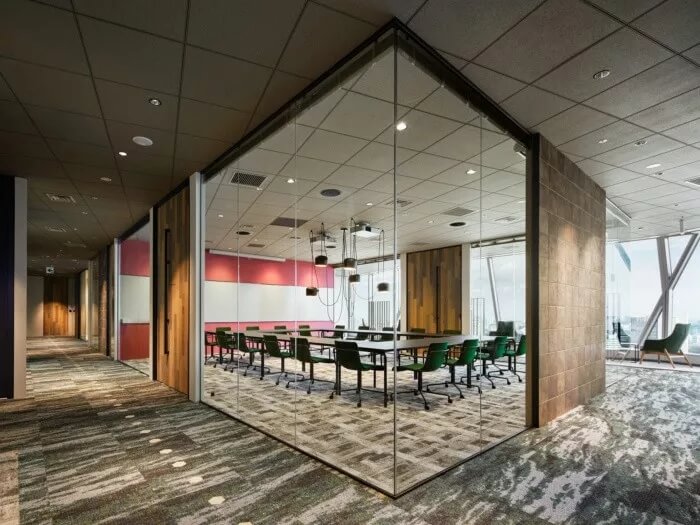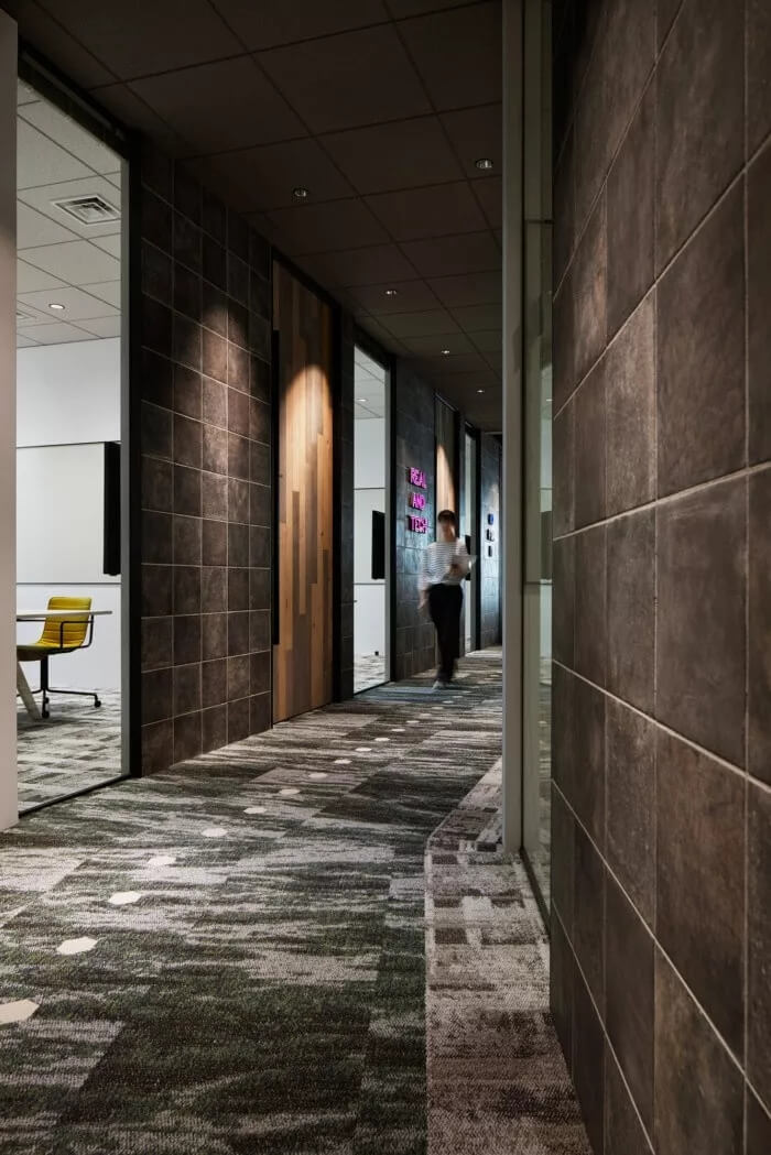為此,設(shè)計團(tuán)隊的目標(biāo)是讓辦公室成為一個人們隨便可以咨詢房地產(chǎn)相關(guān)資訊的地方。入口處有許多綠植,寬敞的空間看起來比起居室還要舒服。辦公室配備了帶有防污圖案的框架,復(fù)古吊燈和帶有當(dāng)下流行風(fēng)格的霓虹燈標(biāo)注,徹底改變房地產(chǎn)公司的傳統(tǒng)形象。空間約有3300平方米,擁有20多件會議室,員工使用的公共空間介于工程師和代理商空曠的工作間之間。