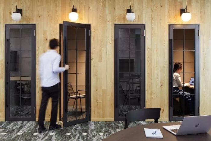 許多在GA工作的技術(shù)人員都屬于千禧一代,他們褒獎多元化。為了使他們更加愉快地工作,設(shè)計團(tuán)隊為工作空間打造了一個盡肯能尊重個人工作方式的環(huán)境。為此,在他們大桌子旁邊加了一臺咖啡機,私人專屬工位、大豆袋為專注工作的人員而設(shè)。