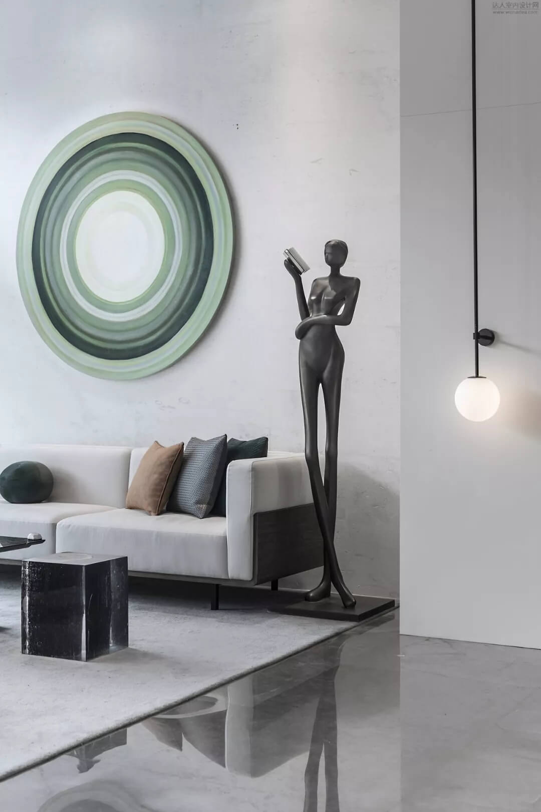 文明的前行離不開知識(shí)的積累,時(shí)間的沉淀會(huì)給人類提供更多的寶貴經(jīng)驗(yàn),有心的設(shè)計(jì)靜立與整個(gè)空間,凝結(jié)的時(shí)間之輪·以樹木年輪為靈感是此處洽談區(qū)的特色,手拿書籍的雕塑予以智慧的氣息的重要性。