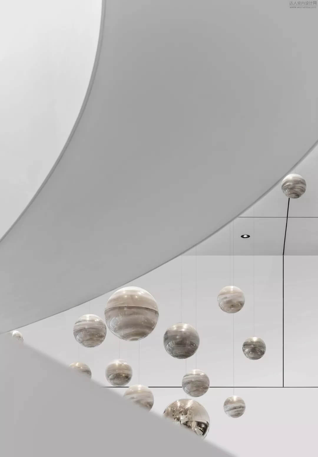 淡雅的白色配以溫馨木色的夢(mèng)幻般旋轉(zhuǎn)樓梯入口,白色球體與之呼應(yīng),旋轉(zhuǎn)而上,動(dòng)態(tài)感的景色盡收眼底,格子狀猶如延續(xù)的·星際穿越,感受平衡時(shí)空不同維度的交措時(shí)光,身處'空間',在無限與有限中穿梭,不經(jīng)意的轉(zhuǎn)角余光是同色的球燈相映,優(yōu)秀的設(shè)計(jì)師是會(huì)講故事的人。
