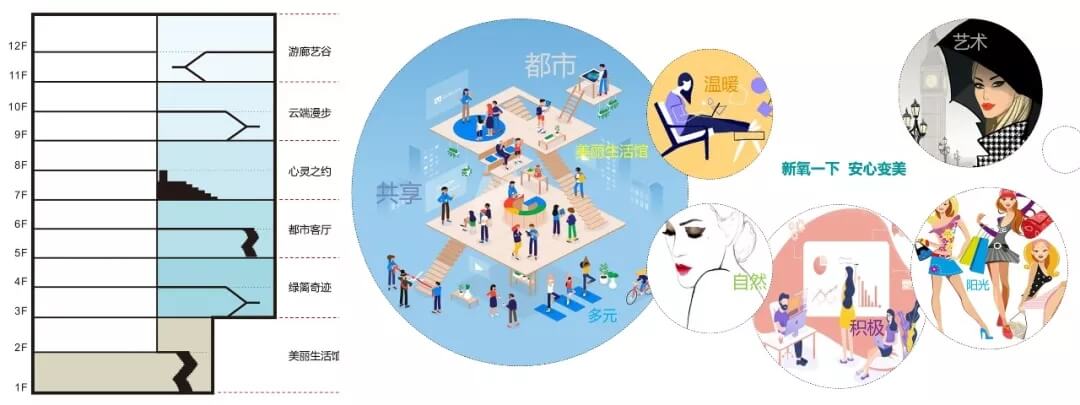 在此理念和品牌屬性的影響下,艾迪爾設(shè)計(jì)師布局辦公和診療空間,傳達(dá)出“舒適溫暖,積極自信,時(shí)尚藝術(shù),活力陽(yáng)光”的氛圍。因此在大廳布局“美麗生活館”,建筑南側(cè)每?jī)蓪釉O(shè)計(jì)成不同主題的公共空間。