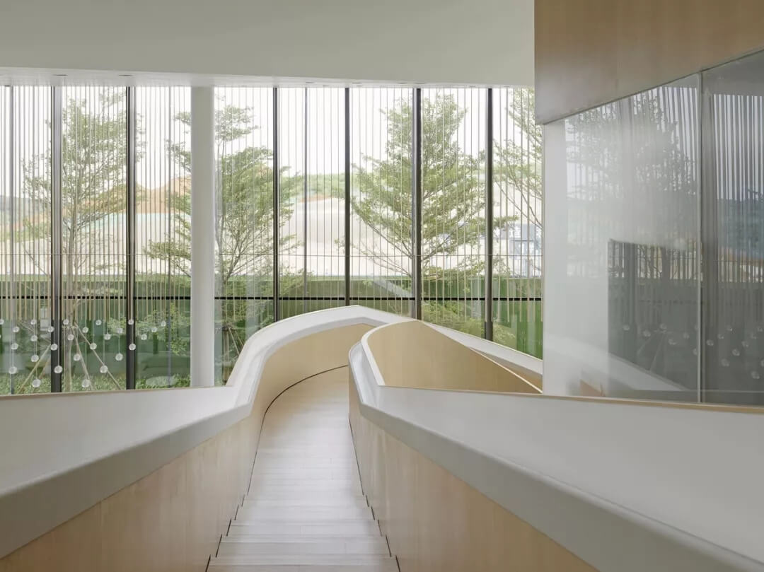 通過對建筑與室內(nèi)整體考慮、通篇布局,傳統(tǒng)的客家村落文化在現(xiàn)代的設計語言中再次被講述出來,游走于整個建筑之中,讓人體驗到的是充滿流動性的空間感受。