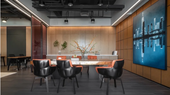 良好的秩序是企業(yè)管理中至關(guān)重要的一環(huán),設(shè)計(jì)師將傳統(tǒng)的分區(qū)規(guī)則弱化,通過(guò)漏斗狀開放性的空間布局,賦予空間招財(cái)納福之意,以包容的姿態(tài)歡迎更多的圈層精英,展現(xiàn)了企業(yè)的人文關(guān)懷與藝術(shù)性。