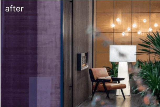 6.以木飾面格柵加玻璃的組合取代原始純玻璃墻面的布局,增加空間層次和細(xì)節(jié)。