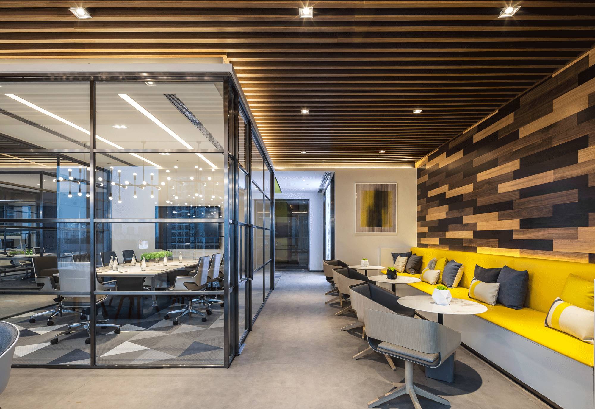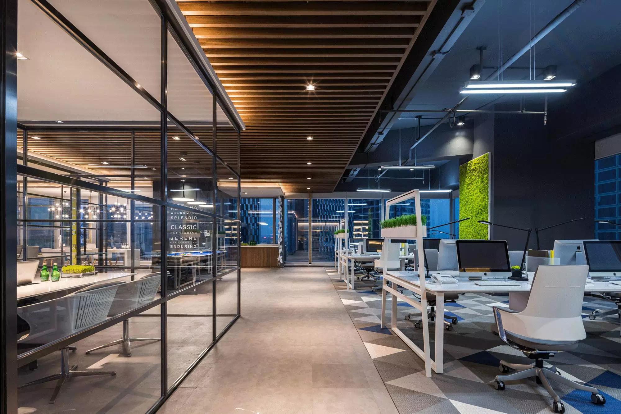 采納了“自由”空間慣用的開放式設(shè)計,拋棄了沉悶的障礙物、墻壁,僅預留必要的墻體,并用少數(shù)玻璃分割不同的空間,多人會議室、小組會議室的靈活設(shè)計,動線連貫流暢,充分滿足了現(xiàn)代科技空間“樂活、高效”的辦公需求。