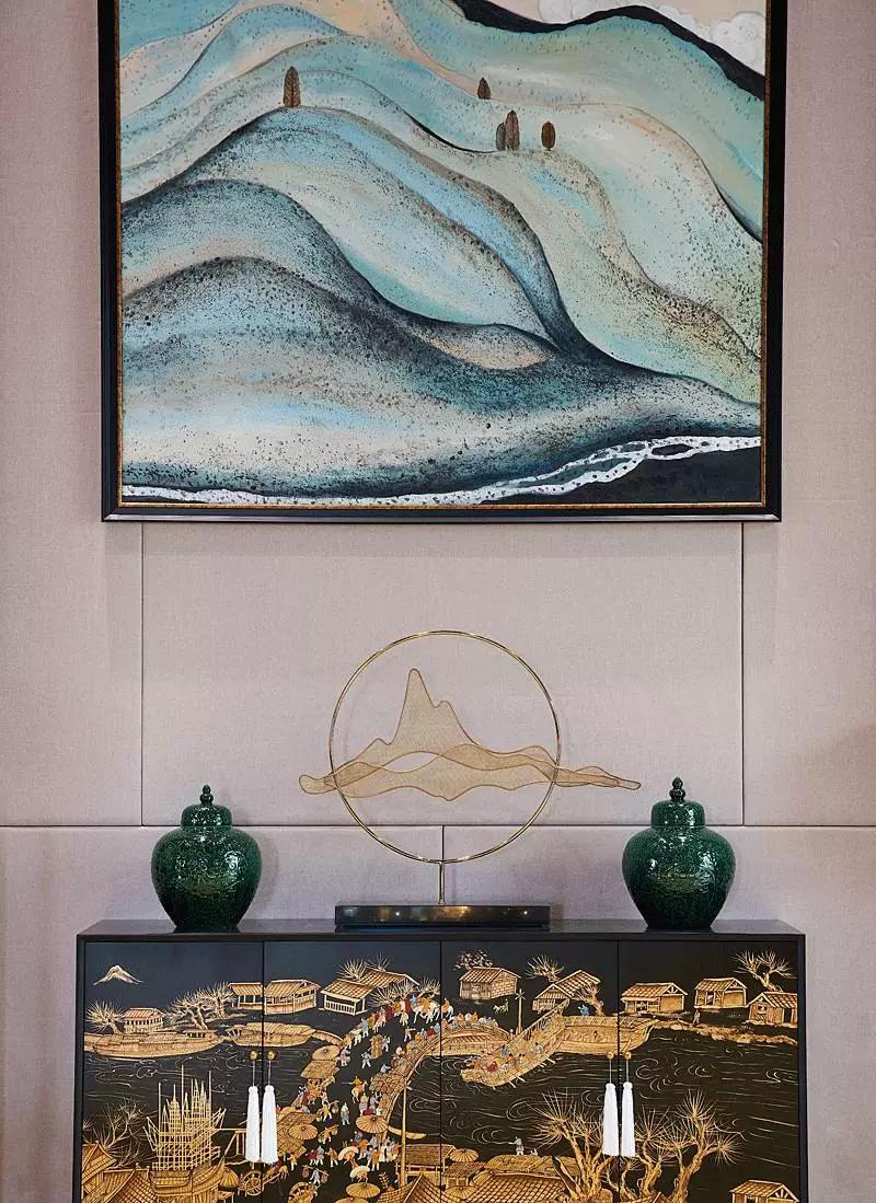 “湖光山色”項目位于西安歷史遺址觀光帶上,毗鄰鎬京遺址公園與斗門水庫,四周環(huán)境怡然靜雅,歷史文化氣息濃厚,近期其營銷中心已完工,軟裝設計交由深圳印象空間呈現(xiàn)。結(jié)合周圍環(huán)境及甲方需求,印象空間最終將西安古都情懷融于作品中,于細微之處傳遞意境之美。