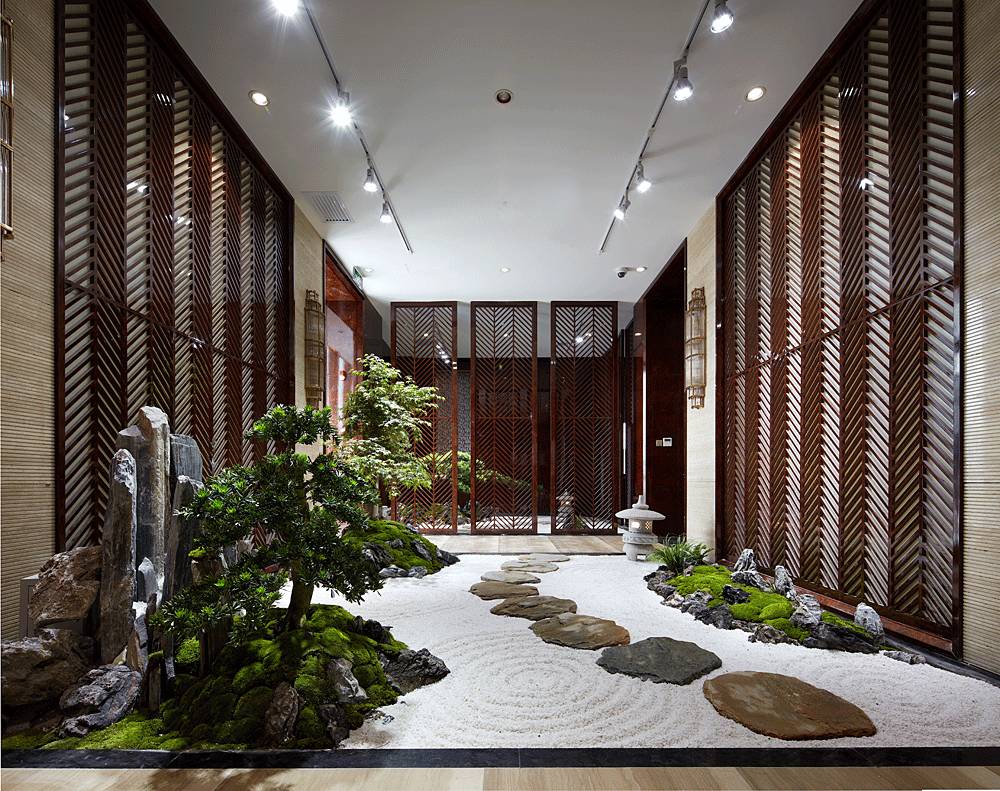 設計之初,印象空間就設想把自然景觀融入營銷中心,與周邊環(huán)境相呼應,拉近人與空間的距離。在現(xiàn)場施工條件有限的前提下,綜合各種因素的考量,最終以景觀軟裝來呈現(xiàn)。