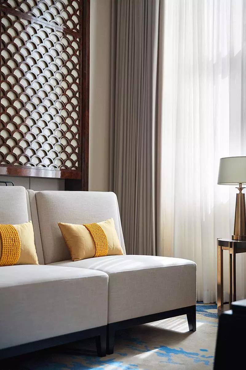VIP區(qū)域以雅致的米白色和簡化的線條打底,奠定空間的基調(diào),為提升舒適度,沙發(fā)椅選擇造型簡約的現(xiàn)代款型,通過線條的弧度拿捏出中式的味道。