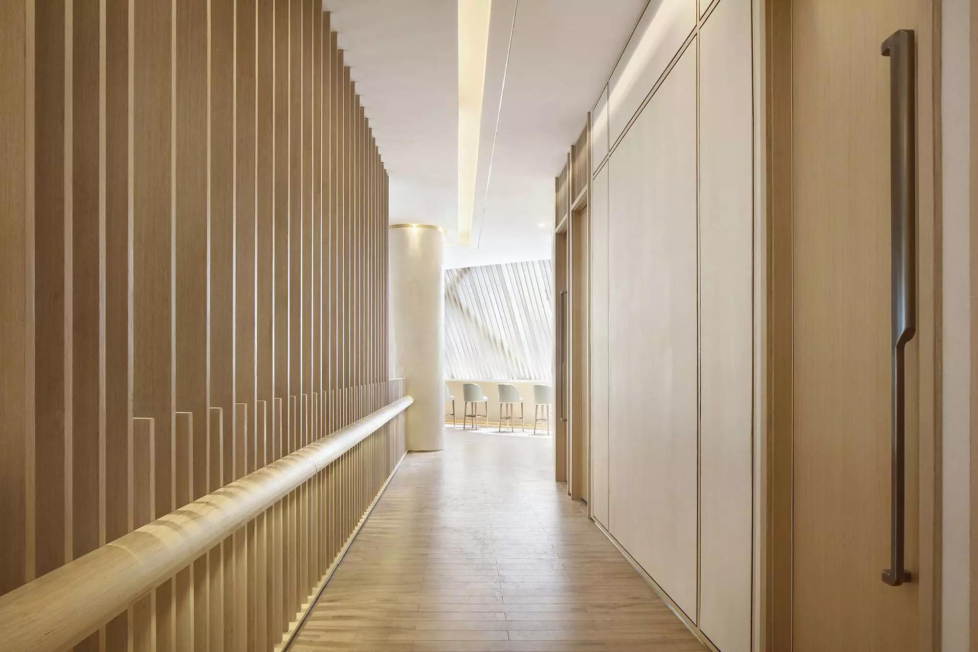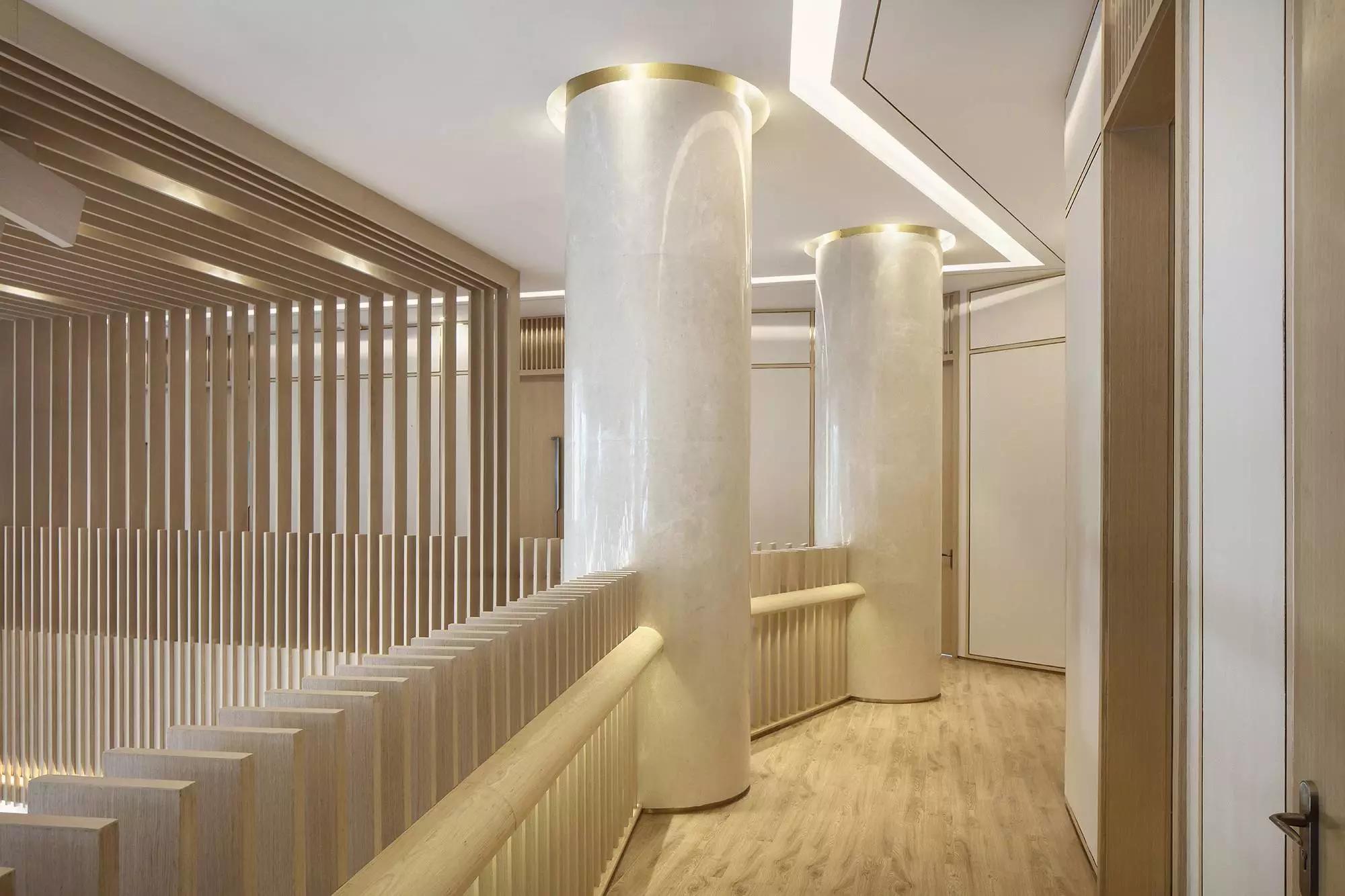 這種處理方式,仿佛原有建筑內(nèi)又套了一個(gè)建筑,觀者從外入內(nèi)將面臨到巨大的空間反差。光影從結(jié)構(gòu)衍生出來(lái),也是結(jié)構(gòu)的一部分。采用最簡(jiǎn)單的平行結(jié)構(gòu),光影作用下卻出現(xiàn)了復(fù)雜的韻律感受,并根據(jù)光線移動(dòng)在一天內(nèi)發(fā)生轉(zhuǎn)變。