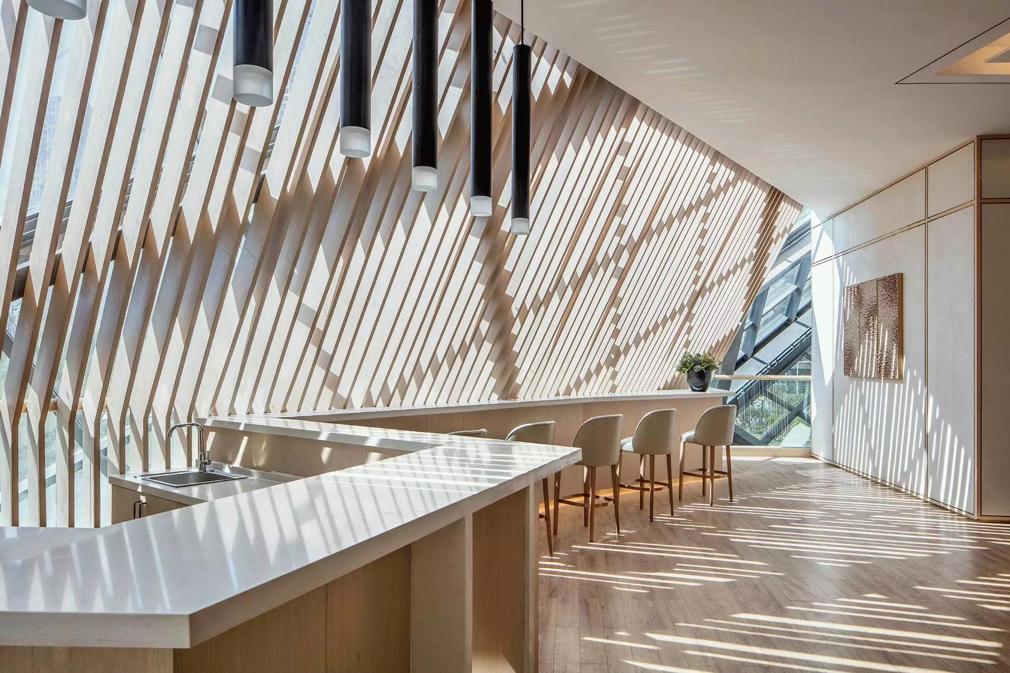 項(xiàng)目原屬昆明聯(lián)想科技城,后由融創(chuàng)地產(chǎn)接盤(pán),他們希望將該建筑打造成為集辦公、商業(yè)、展示等多元化為一體的空間,并使其成為昆明新的城市地標(biāo)建筑。接手本案的主創(chuàng)設(shè)計(jì)師是默存設(shè)計(jì)的季青濤,作為具有建筑師背景的主創(chuàng)設(shè)計(jì)師,從建筑空間的思維從事空間設(shè)計(jì)便成為一種必然。在原有“盒子”空間的內(nèi)部,設(shè)計(jì)師以木結(jié)構(gòu)對(duì)空間進(jìn)行了重組和分割。