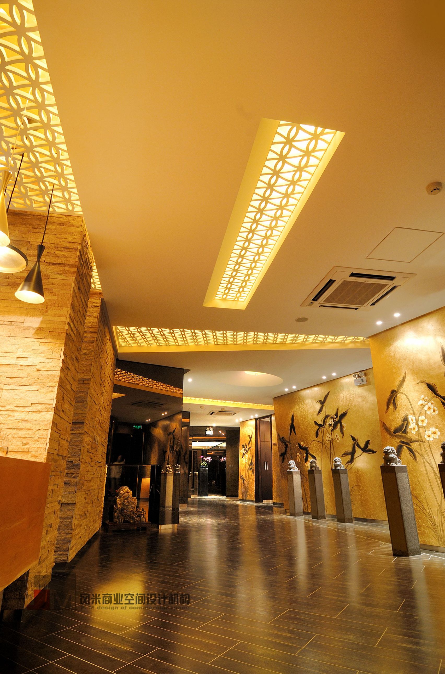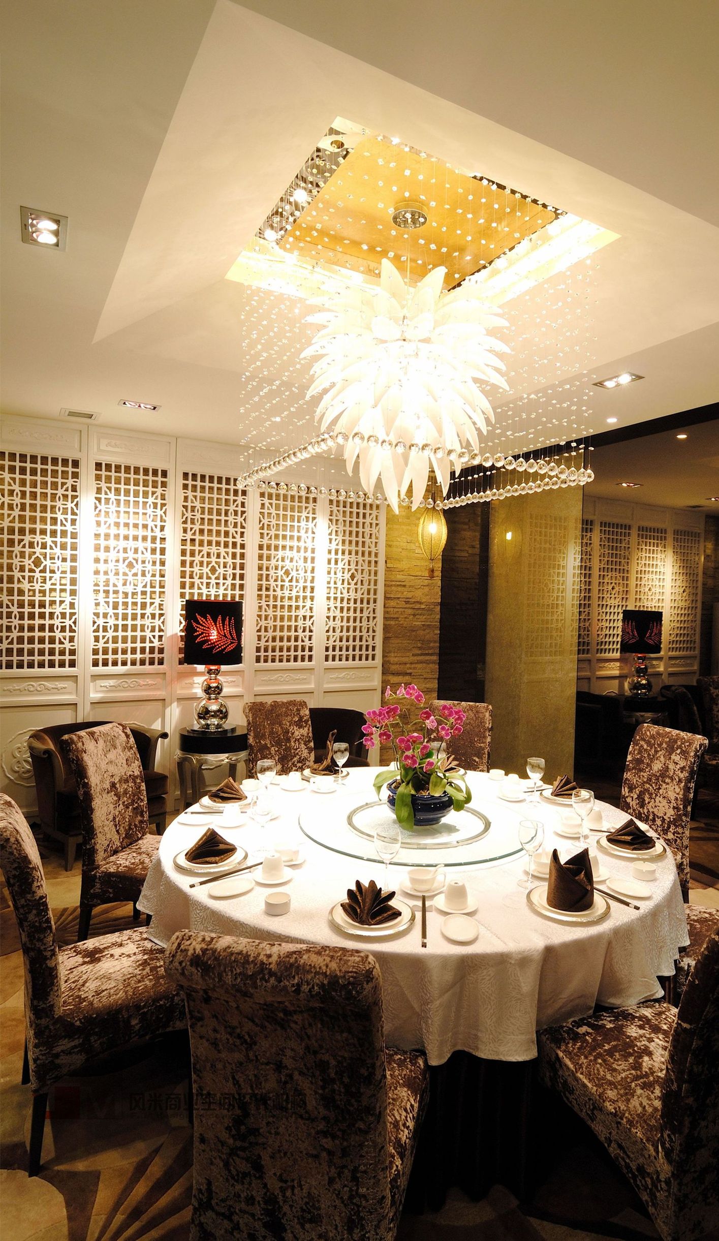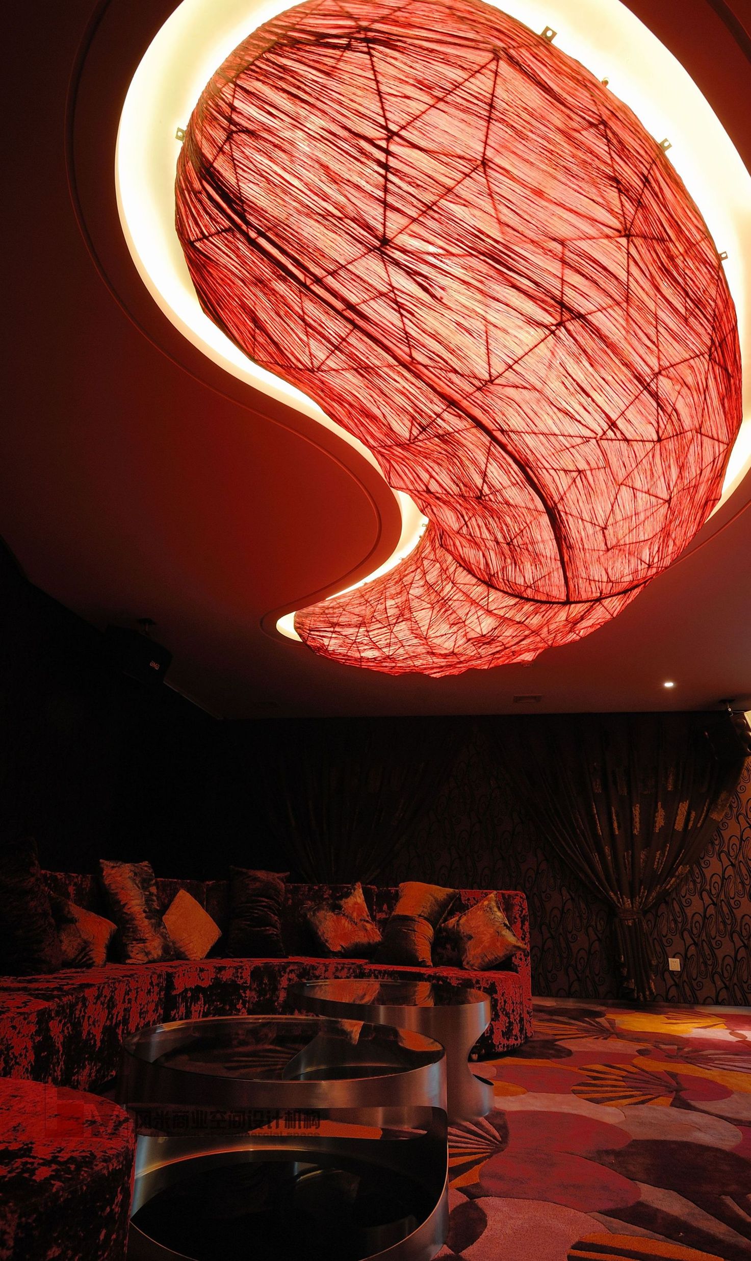 現(xiàn)代人的價值觀是一個在顛覆中發(fā)展的時期,人們的觀念在顛覆,消費的觀念亦在成熟中顛覆。所以在這次設計中我們要通過另一種美學設計手法再一次顛覆人們的審美價值觀。在設計中空間內(nèi)以超出常規(guī)的比例關系的形態(tài)來表露意識形態(tài)。在材料排布上以非慣性的處理手法來獲得人們對新形餐飲空間的認知,在色彩運用上以單體空間的色相統(tǒng)一來刺激人們對空間的色彩印象,在家具的造配上追求戲劇化的高度,奢華夸張的概念。使空間在整體上達到一種戲劇化的舞臺效果,讓人們游走其中產(chǎn)生一種非常規(guī)概念的心理感受,從而感受到空間的美感。